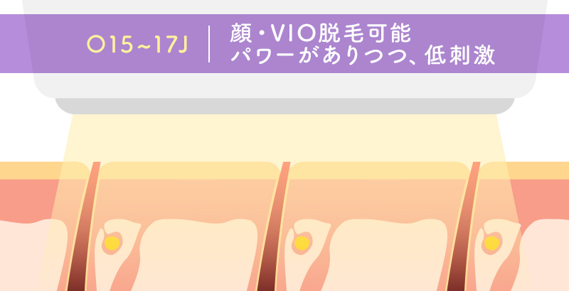 つまり!「15J~17J」の脱毛器を使えば、パワー抜群なまま、傷ややけどの心配をすることもなく、顔・VIO込みの全身脱毛ができちゃうんです!