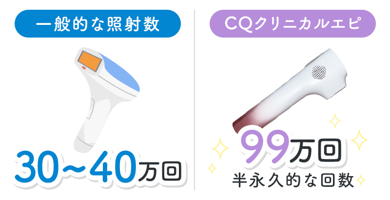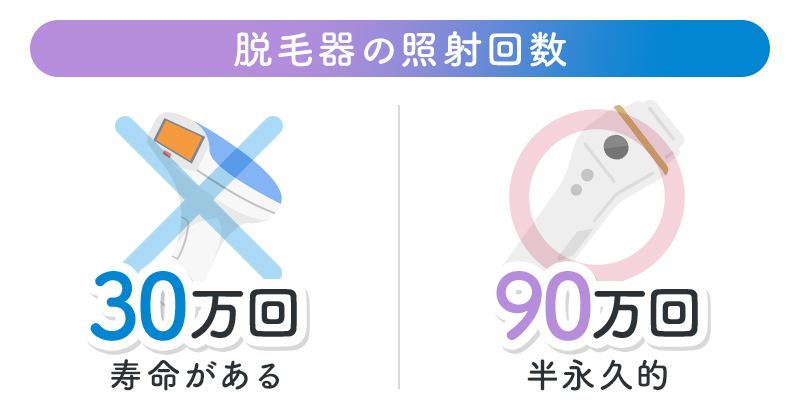脱毛器には照射回数の「上限」があります。選ぶ際は、照射回数「90万回以上」のものを選びましょう!90万回以上であれば半永久的に照射可能です。